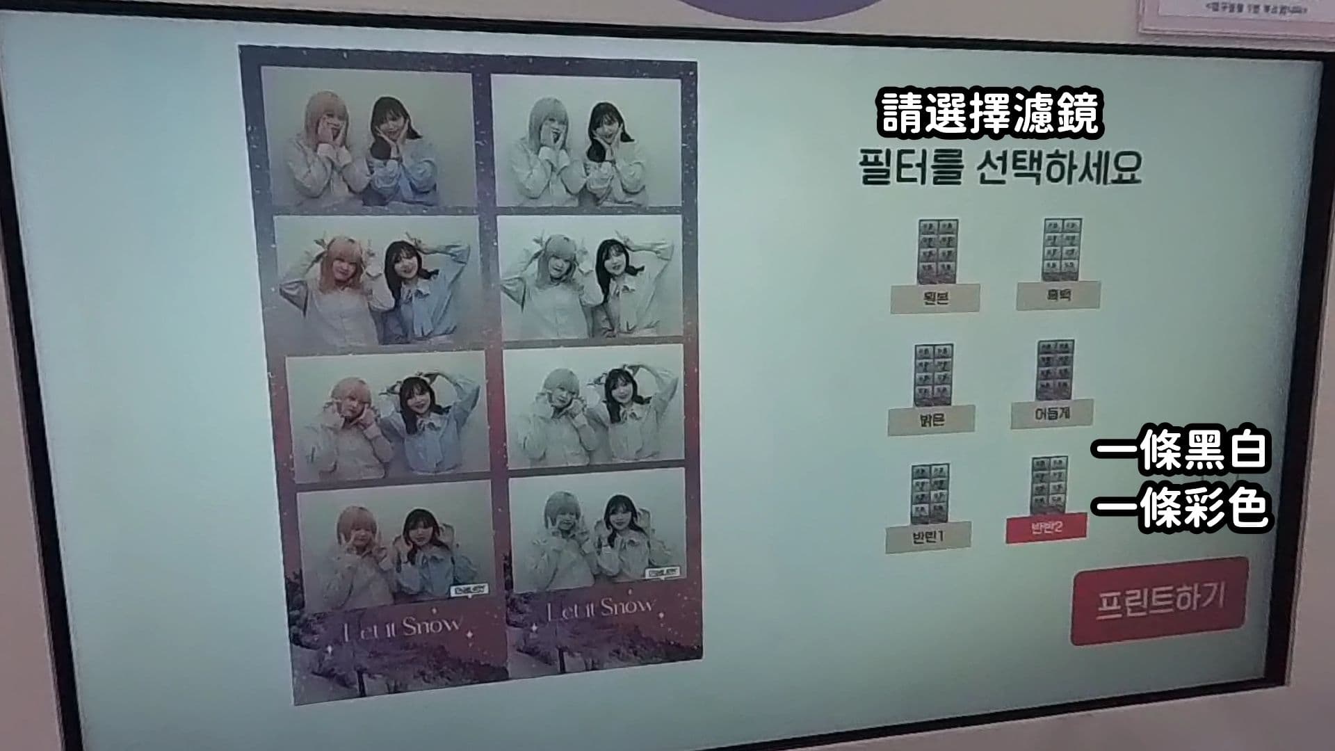 照片出爐啦!日後大家來韓國玩別忘了也來體驗時下最流行的拍貼機,拍張「人生四格」留下美好的紀念。